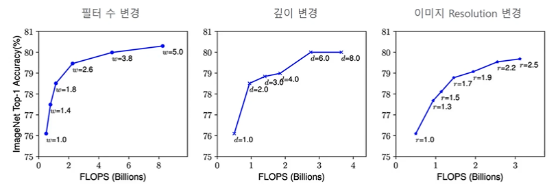 imagenet dataset ๊ธฐ์ค 80% ์ ํ๋์์ ๊ฐ๋ณ scaling ์์๋ฅผ ์ฆ๊ฐ ์ํค๋๋ผ๋ ์ฑ๋ฅ ํฅ์์ด ์ด๋ ค์.