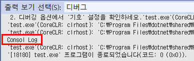 // 1. DefaultTraceListener 사용. VS Output 창에 로깅